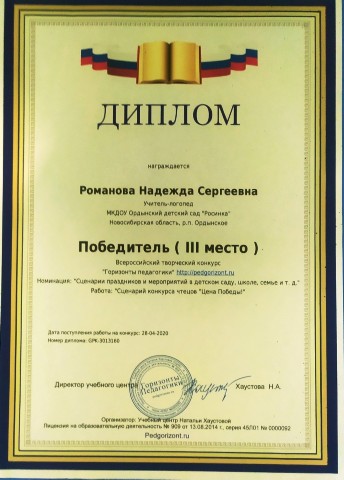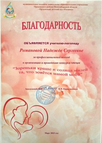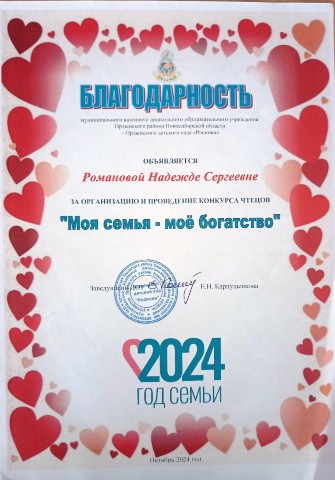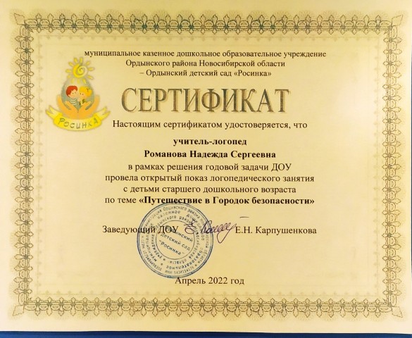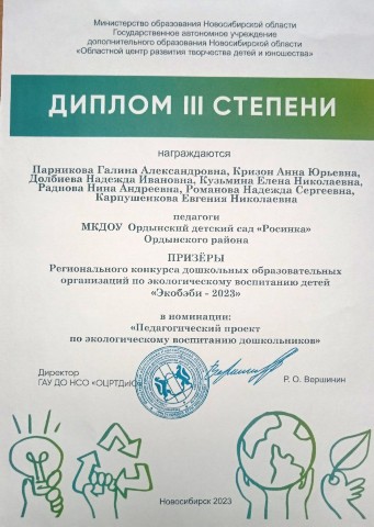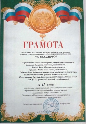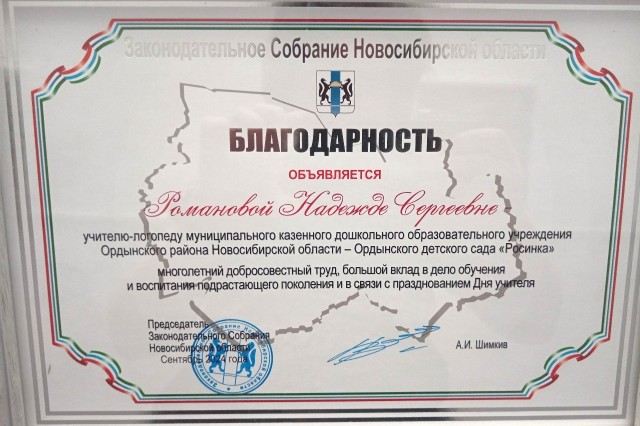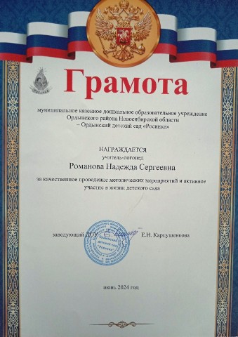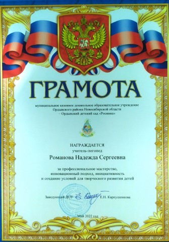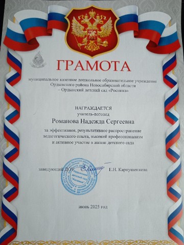за эффективное, результативное распространение педагогического опыта, высокий профессионализм и активное участие в жизни детского сада.