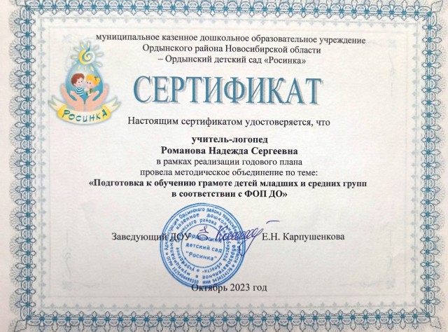 "Подготовка к обучению грамоте детей младших и средних групп в соответствии с ФОП ДО "