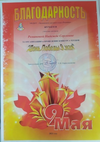 за организацию и проведение конкурса чтецов "День Победы 9 Мая!"