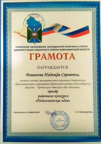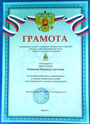 за инновационный подход, инициативность и создание оптимальных условий для познавательного и речевого развития детей