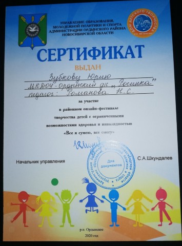в районном онлайн-фестивале творчества детей с ограниченными возможностями здоровья и инвалидностью
